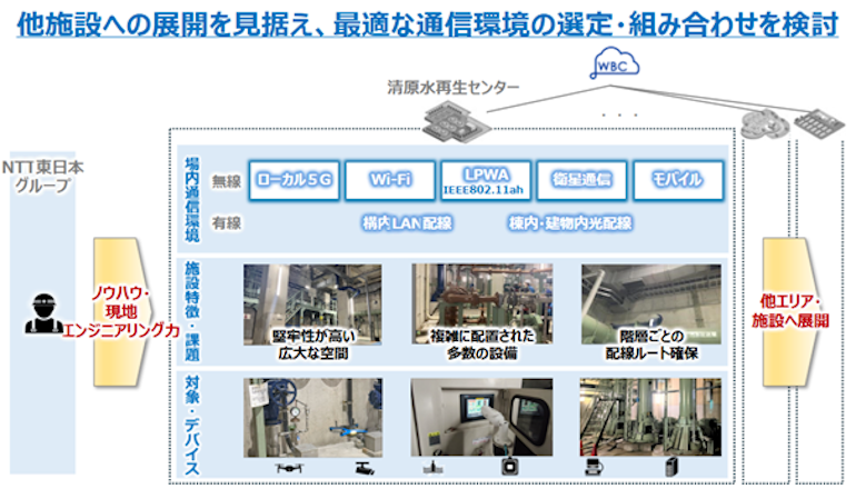 メタウォーターならびにNTT、NTT東日本、NTT-MEは今月より共同で、①IEEE802.11ah(Wi-Fi HaLow)等を活用した「上下水道施設における情報通信ネットワークの最適化」と、②IoT/AIを活用した「保守点検業務の自動化」の実現に向けた実証実験を、宇都宮市上下水道局 清原水再生センターにて2027年3月までの予定で行う。