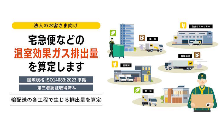 宅急便 、宅急便コンパクト、EAZYの発払のみ、日本国内(離島を除く)発着の荷物を対象に、同国際規格に基づき、「燃料法」や「燃費法」などを用いて算定。第三者機関(ソコテック・サーティフィケーション・ジャパン)による妥当性評価を取得している。預かった荷物のサイズや発着地、発送個数などからGHG排出量を集計し、1カ月単位で総排出量を「温室効果ガス排出量レポート」として提供する。